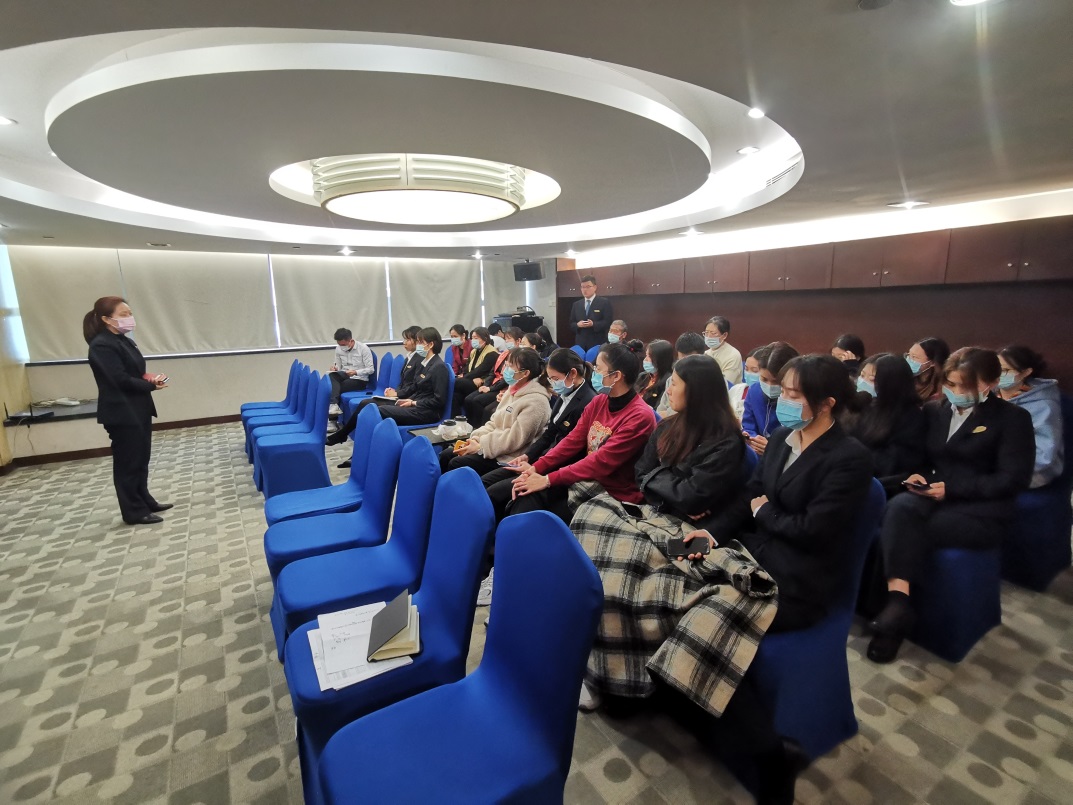 次日,学校与酒店方共同面向各岗位的实习学生召开了见面答疑会。杨国民、林耀佳、徐秀玉、李迪分别就实习过程学习、实习问题洽谈结果、实习任务注意事项和个人思想成长与转换与现场同学做了交流,酒店人力资源总监韩慧敏也在现场就实习中遇到的其他疑问做了当面解答和解释。