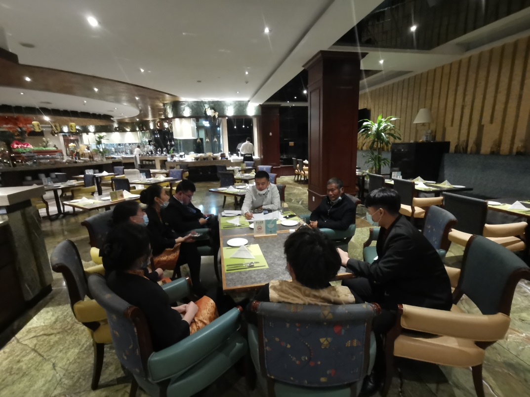 抵达酒店当天下午,应用外语学院教师一行便召集了部分学生代表,就前期搜集到的一些突出问题与学生代表进行了面对面座谈,并到学生实际的一线工作岗位中进行了深入调研,做了一一归类整理与记录。当天晚上,应用外语学院教师一行就搜集了解到的问题与酒店方做了积极协商与沟通。酒店方对可以即刻做出协调与处理的问题在沟通现场进行了拍板决定,对需要与实习学生进一步做好解释和沟通的问题也与老师们进行了一一梳理。
