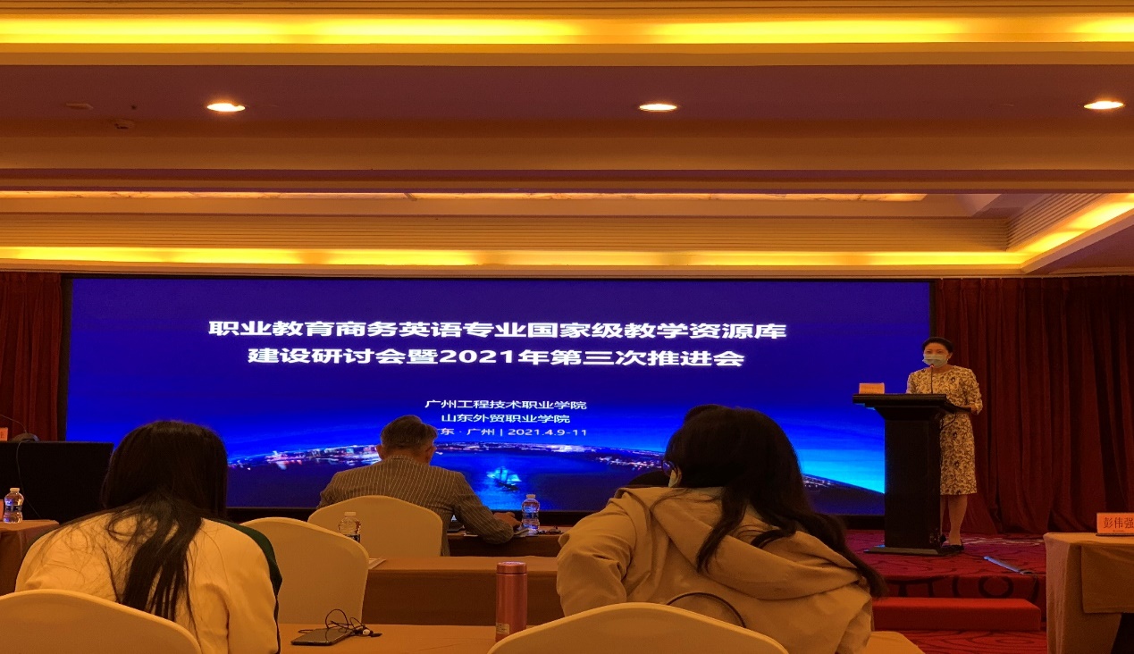 为了加快推进商务英语专业教学资源库的建设进程,加强参建院校之间的沟通与交流,解决建设过程中出现的问题,同时依托资源库建设提高教师的教学能力,推动教学改革,4月9日-11日职业教育商务英语专业教学资源库建设研讨会暨第三次推进会在广州大厦五羊A厅会议室举行。本次研讨会由广州工程技术职业学院主办,大会围绕商务英语专业教学资源库的建设展开了热烈讨论,21所参建院校的项目负责人和老师参加了会议。应用外语学院院长彭枚芳、尹姣副教授和徐娟娟老师一同参加会议。