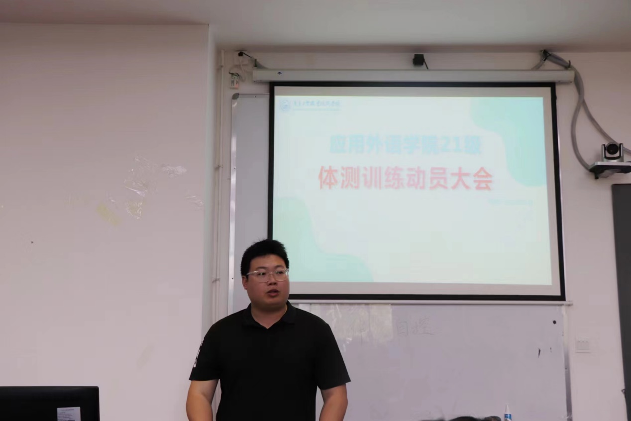 首先,冯锐骐介绍了各班开展训练计划的相关事项安排。他详细介绍了今年体质测试抽测工作训练时间、参与人员、动作要领等,并表示将会对各班体委予以训练项目的相关培训。冯锐骐叮嘱参训学生务必服从体育老师指导和管理,严守训练时间,注意训练安全,确保训练质量。