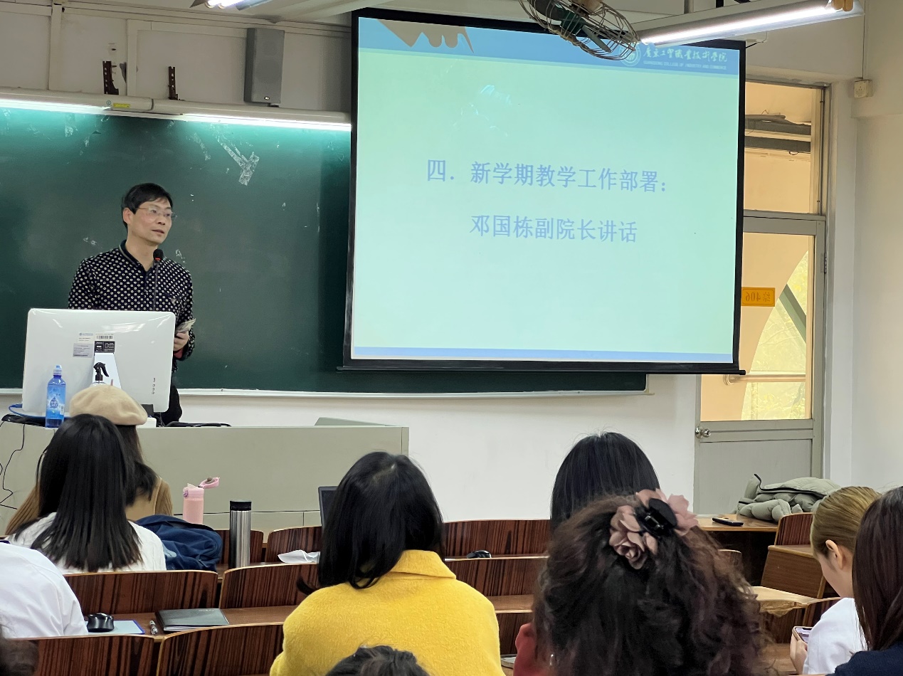 会上,学院副院长邓国栋就教学日常管理工作强调了具体部署和要求,确保学院期初教学工作的正常有序进行。学院党总支副书记罗春科分享了学院过去一年的学生就业情况,对各班主任布置落实了新学年学生工作计划和任务要求,强调各班主任应掌握学生返校情况,积极开展安全教育主题班会,加强学生纪律教育和学生考勤管理,做好学生心理适应性引导,同时认真落实好毕业生就业工作和外出实习管理制度,妥善协调好毕业和实习等相关工作任务。学工办主任林耀佳也就学生日常管理专项工作及教师值班安排作了说明和部署,提出了辅导员队伍强化思政引领的主责主业。