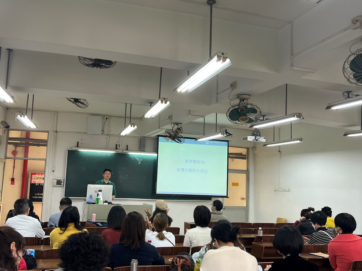 学校党委委员、副校长陈珊兴在教职工大会上讲话