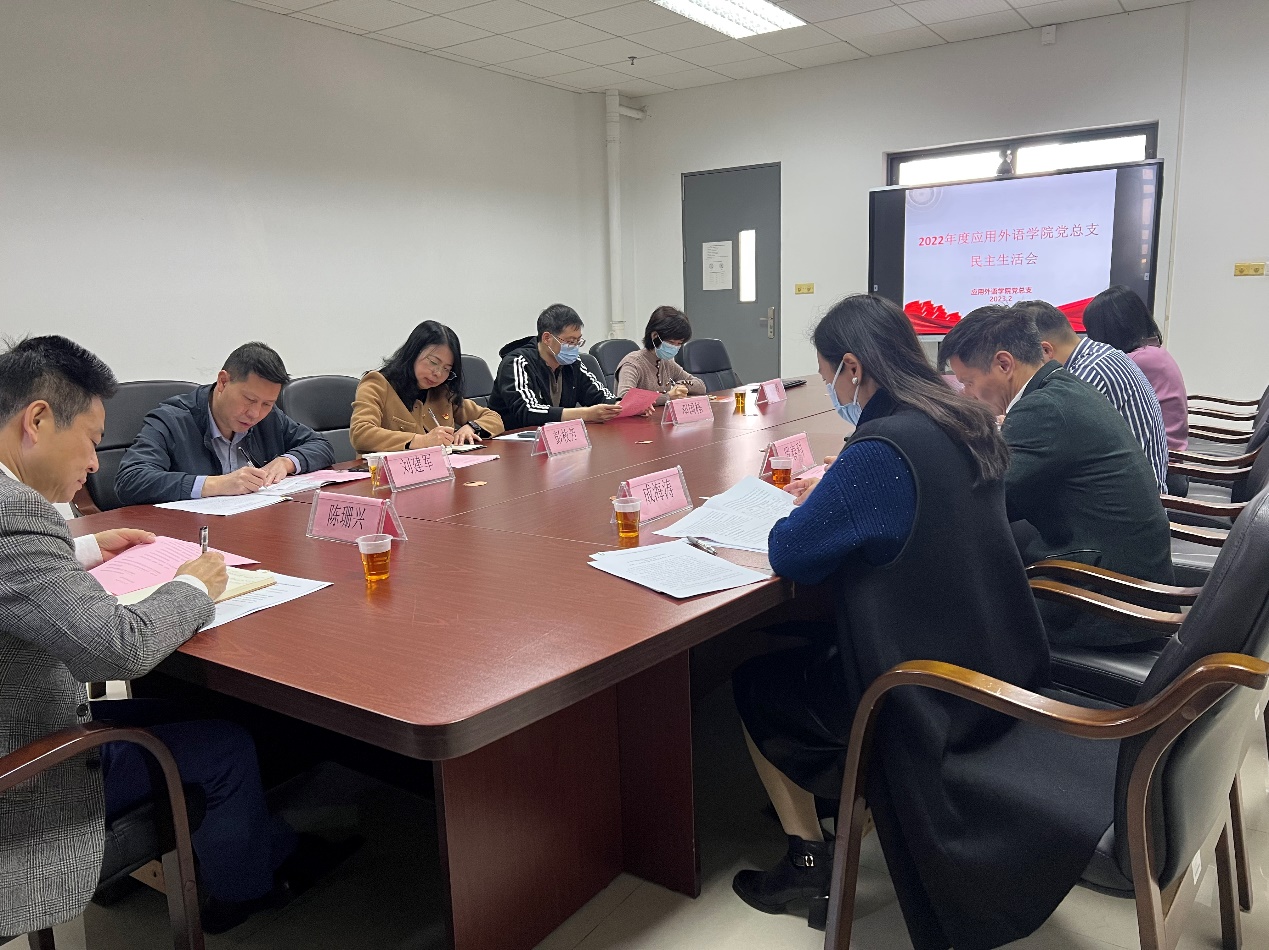 本次民主生活会针对实际查摆问题、深入剖析触及思想,既找出了差距不足,又提出了措施方案。会议最后,学校党委委员、副校长陈珊兴同志就本次民主生活会作会议情况总结,指出:应用外语学院党总支能按照学校党委部署组织筹备会议,大会准备充分,问题剖析深入。对班子成员后续工作,他提出三点希望:一是加强政治引领,做好“六个带头”;二是落实好问题整改,开拓创新,敢于担当;三是根据学院实际主动谋划,长远规划。希望外语学院班子践行以人民为中心的发展思路,团结带领广大师生为完成新时代党托付的历史使命而不懈奋斗!齐心协力共同推进学校和学院的高质量发展!