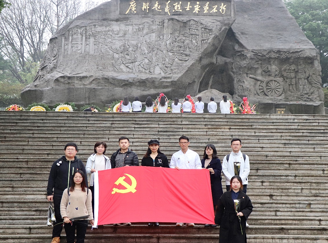 为深入学习贯彻习近平新时代中国特色社会主义思想和党的二十大精神,落实《新时代爱国主义教育实施纲要》,学习红色革命文化,重温血火交融历史,回望激情燃烧岁月,缅怀先辈英烈伟绩。暮春时节,踏着纷纷细雨,应用外语学院党总支部分教工党员、学生党员、入党积极分子、团干、优秀团员等一行来到广州起义烈士陵园,进行“缅怀先烈志,共筑中华魂”的红色革命文化教育主题党日活动。本次活动由应用外语学院党总支主办、党群服务中心、学院团委联合承办,学院师生46人参加了此次活动。