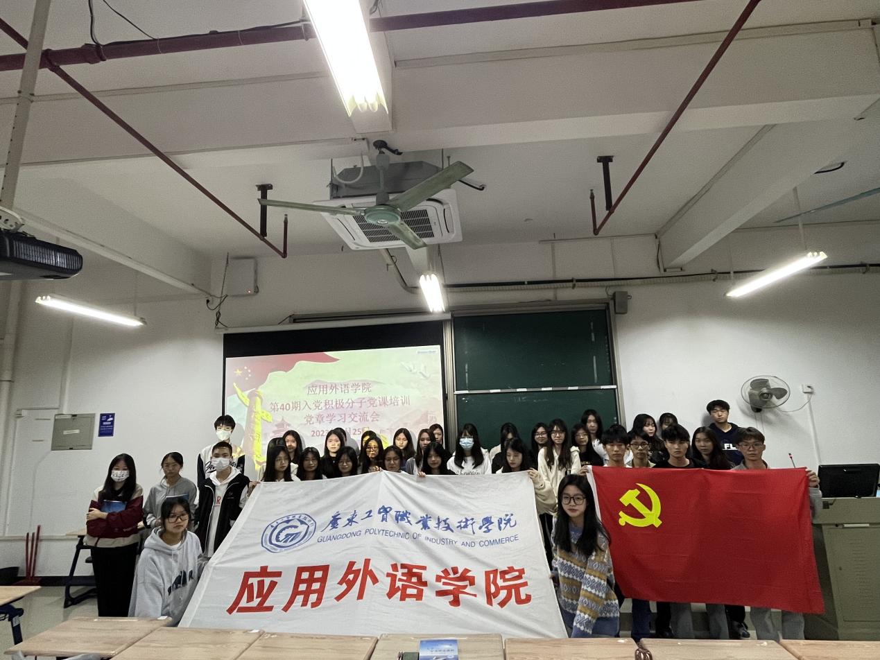 为了深入学习贯彻党的二十大精神,进一步端正入党动机、明晰党的纪律,2023年4月25日,应用外语学院党总支第40期入党积极分子培训班开展了学习交流会。