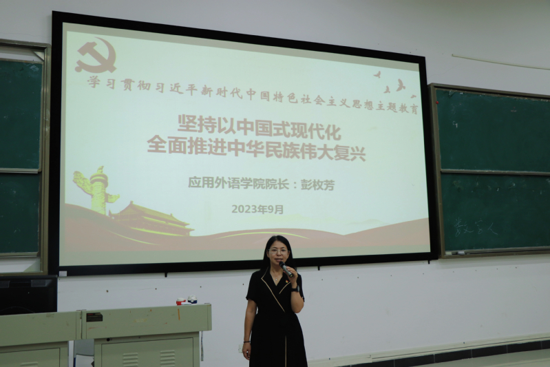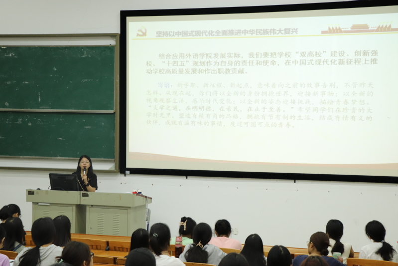 为学习贯彻习近平新时代中国特色社会主义思想,9月16日晚,应用外语学院院长彭枚芳于明德楼2区305为新生们上了院长思政第一课。