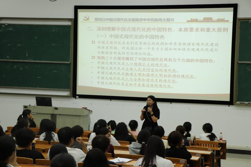 首先,彭枚芳结合中国式现代化的“中国特色”、“本质要求”等向同学们深入细致地讲解“什么是中国式现代化”,帮助他们更清晰地理解中国式现代化的内在逻辑、主要特征和丰富内涵,引导同学们坚定理想信念,以梦为马、不负韶华,把自己的奋斗与努力和时代脉搏紧密的结合在一起,肩负起时代赋予的使命,以奋斗之姿展现青春风采。