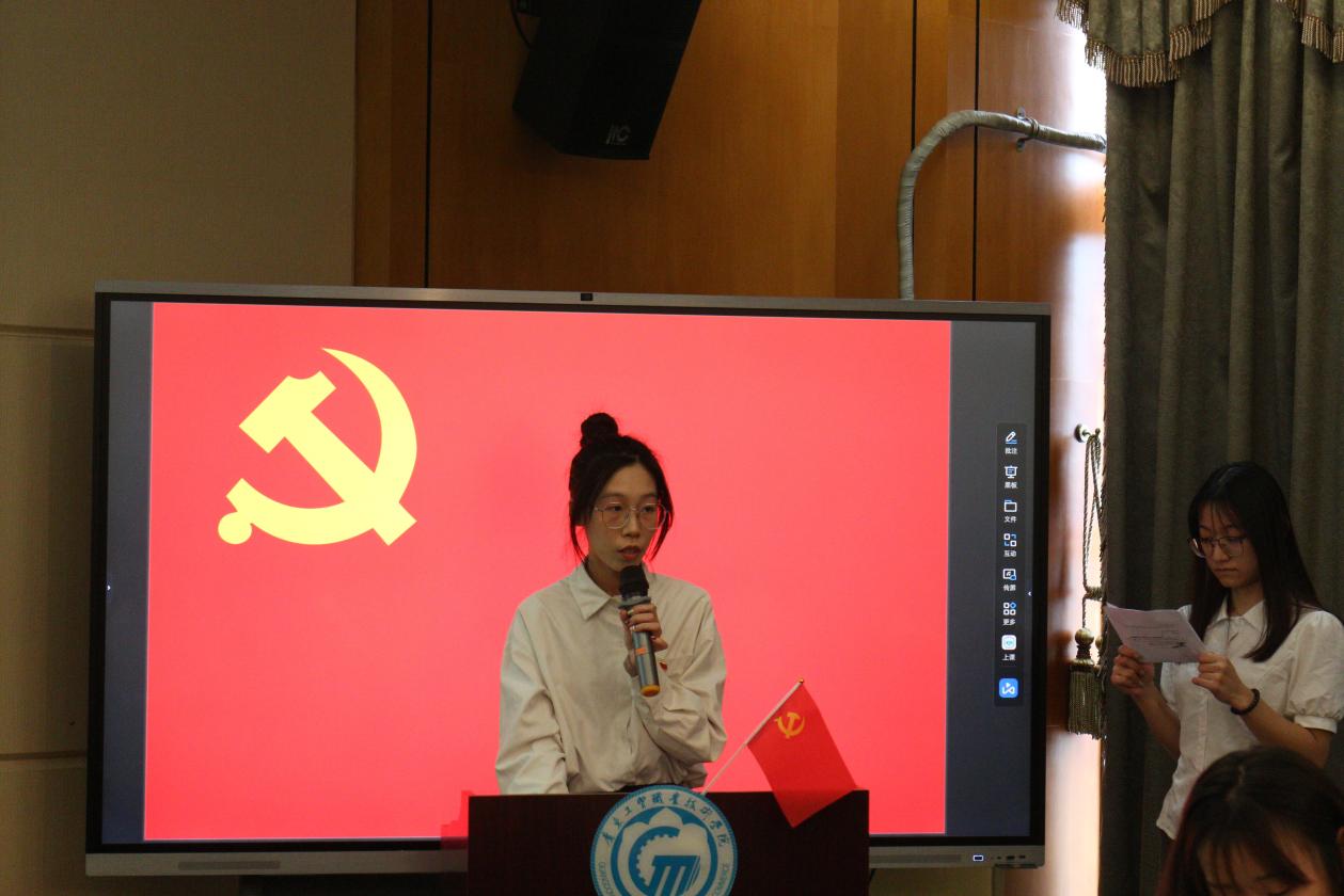 学生第一党支部孙文星同志领学习近平总书记在二十届中央政治局第十次集体学习时的讲话精神以及在第十个国家宪法日之际作出的重要指示,号召大家要坚定法治自信,讲好新时代中国法治故事;学生第二党支部梁观旖同志领学习近平总书记在《求是》杂志第22期发表了重要文章《推进生态文明建设需要处理好几个重大关系》,号召大家要高质量发展的重要支撑,生态优先、绿色低碳的高质量发展只有依靠高水平保护才能实现”。