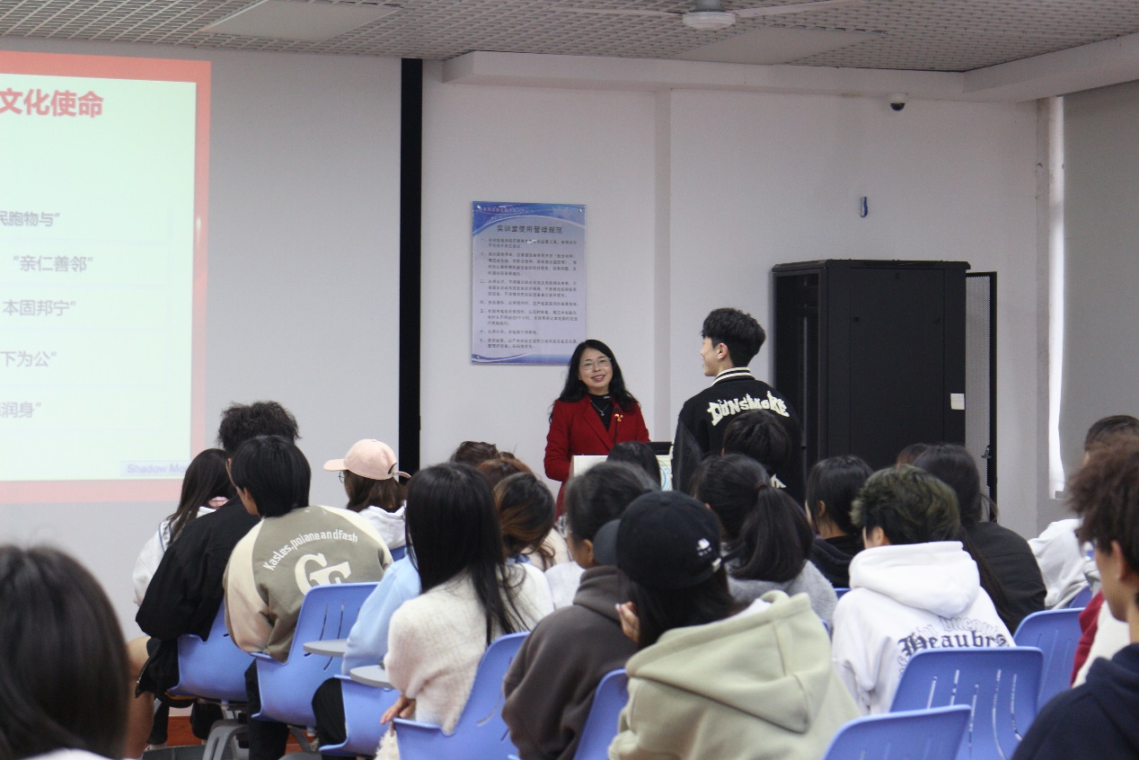 为深入领会习近平文化思想,增强青年学子对党和国家的热爱,为外语学院高质量发展贡献智慧力量。3月7日,应用外语学院院长彭枚芳在白云校区实训楼602开讲 “思政第一课”。学院辅导员和入党积极分子参加本次讲座。