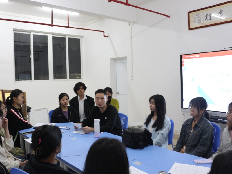 会上,姜旭扬从新闻工作站工作介绍、近期新闻稿中出现的问题和文笔提升知识点分享三方面作出详细讲解。他希望参会成员将新闻工作站的工作当做事业来做,追求创新与自我突破;当做就业竞争力的培养方式来做,不断匹配招聘岗位的任职要求;当做个人写作与报道能力积累的途径来做,将最终发布在学院官网上的文章与自己的初稿进行对比,不断复盘,提升自我。随后,姜旭扬以本次新闻工作站培训会为实际案例,从宏观会议流程与微观讲话框架两个方面向参会成员传授新闻稿现场记录的主要流程与核心要点,并围绕相机使用说明、拍照选景“五必拍”和“五不拍”等方面诠释图片为新闻稿内容服务的内涵。参会成员围绕文稿记录、拍照取景、与主持人交流等话题畅所欲言,现场气氛轻松热烈。