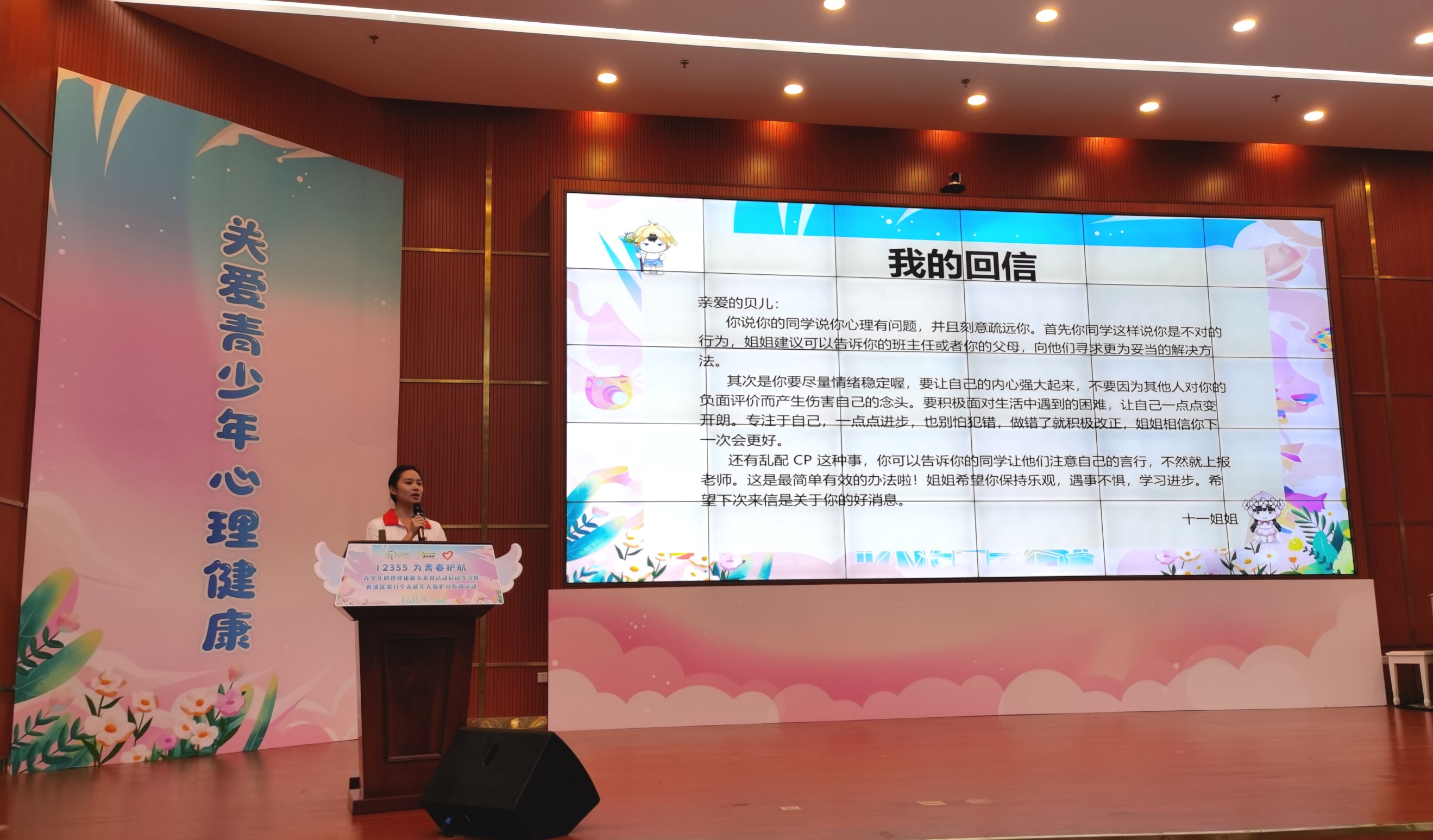 头雁服务队学生骨干罗瑾作为“青杏计划”项目志愿者代表发言