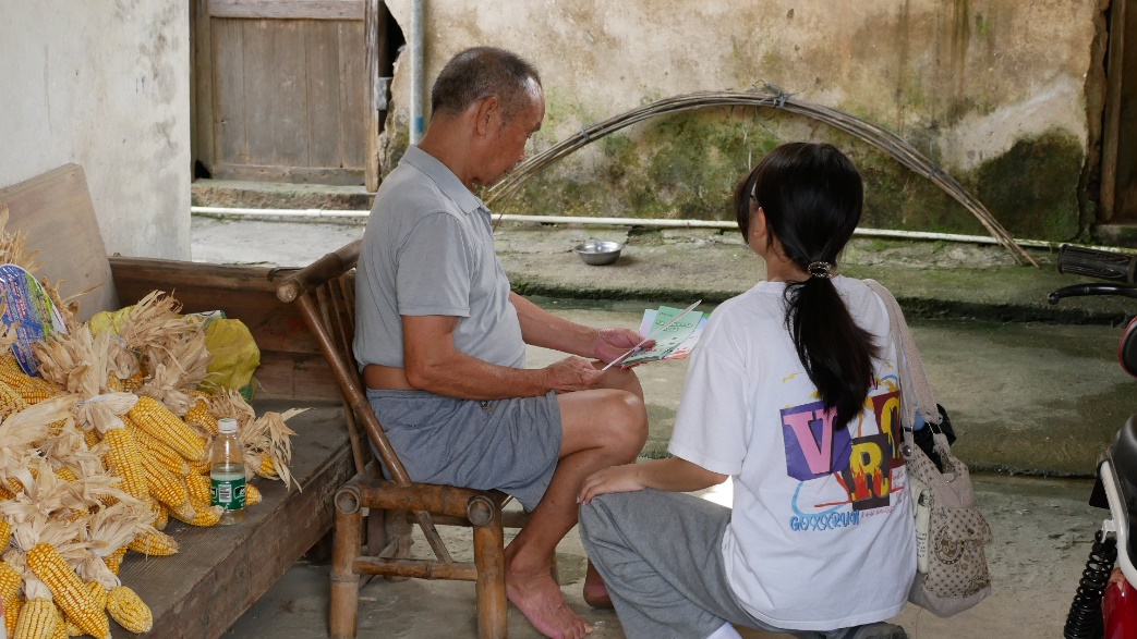 “乡约同行”实践队与高二村村支部书记曾献参(下称曾书记)及其他村干部进行了面对面的交流。实践队队员们诚挚地向曾书记阐述了此行目的——深入宣传国家资助政策,助力乡村振兴教育梦。曾书记对实践队的到来表示了热烈的欢迎,并对即将开展的活动给予了高度肯定。