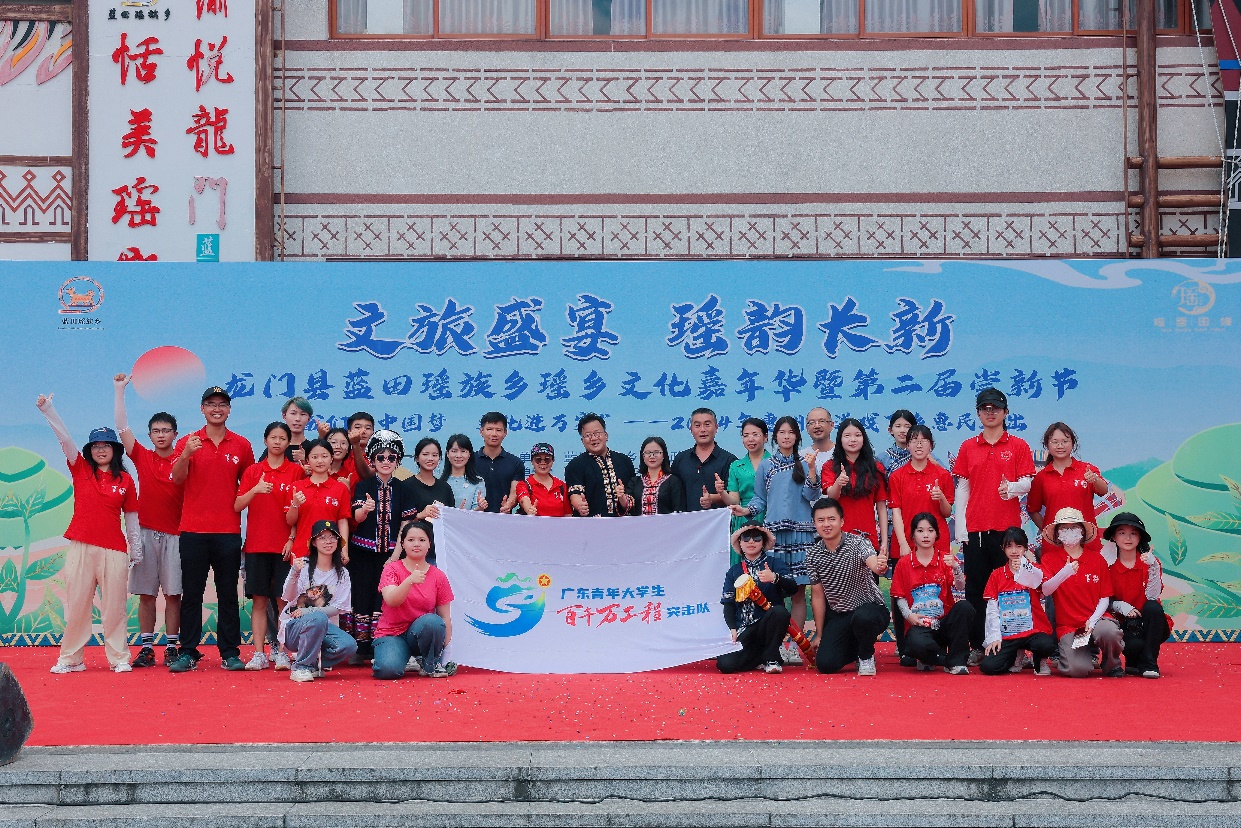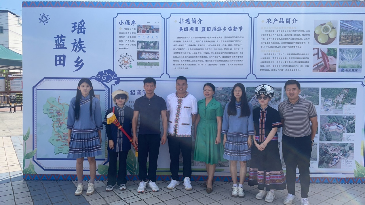 7月11日,龙门县蓝田瑶族乡人民政府成功举办以“文旅盛宴,瑶韵长新”为主题的“龙门县蓝田瑶族乡瑶乡文化嘉年华暨第二届尝新节”活动。龙门县蓝田瑶族乡乡长刘党明、副乡长黄淑华,蓝田瑶族乡各农文旅企业代表,新葡的京集团8814vip应用外语学院党总支临时负责人罗春科,院长彭枚芳,副院长胡红玲,应用外语学院科技特派员团队,“百千万工程”青翼服务队全体队员参加本次活动。