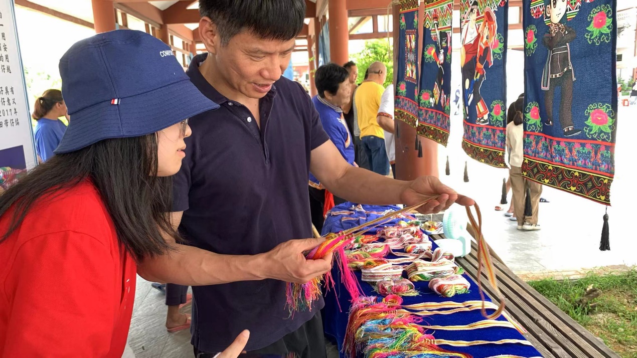 “青翼”队员现场科普瑶族非遗“织带仔”