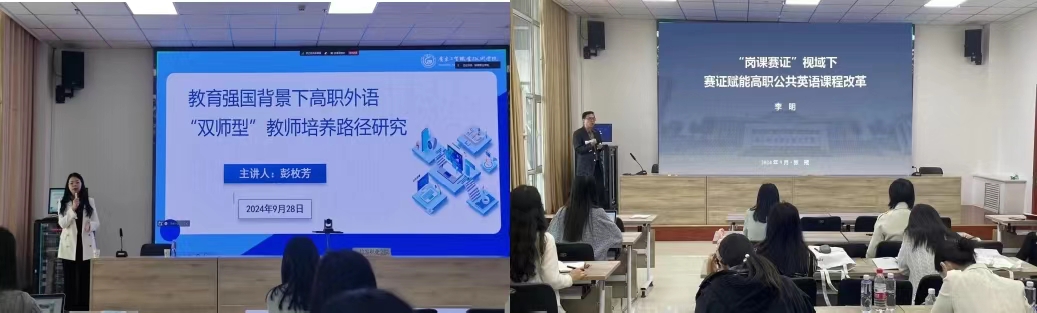 在专题讲座中,刘建珠以“弘扬教育家精神,争当新时代高职好教师”为题,阐述了新时代背景下高职教师的责任和使命;彭枚芳围绕“教育强国背景下高职外语‘双师型’教师培养路径研究”进行了探讨;李明从“岗课赛证”视域出发,分享了赛证赋能高职公共英语课程改革的经验和思考;刘建珠和深职大公外部第三教研室主任李立合作发表“新时代背景下高职公共英语教学之困与变”。
