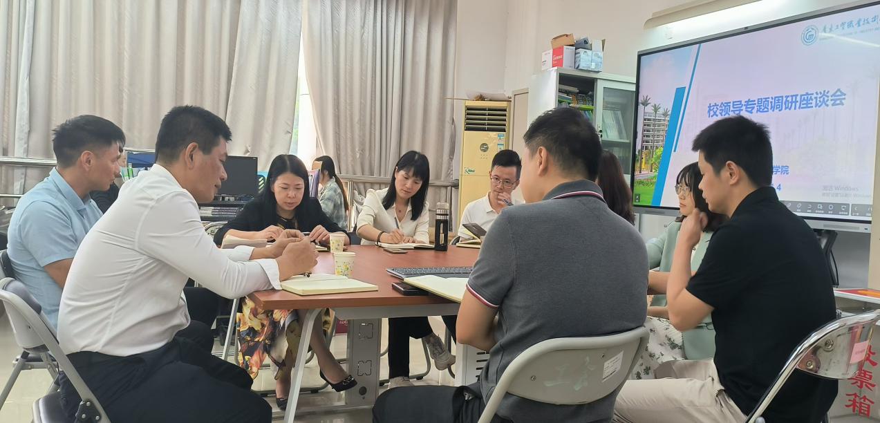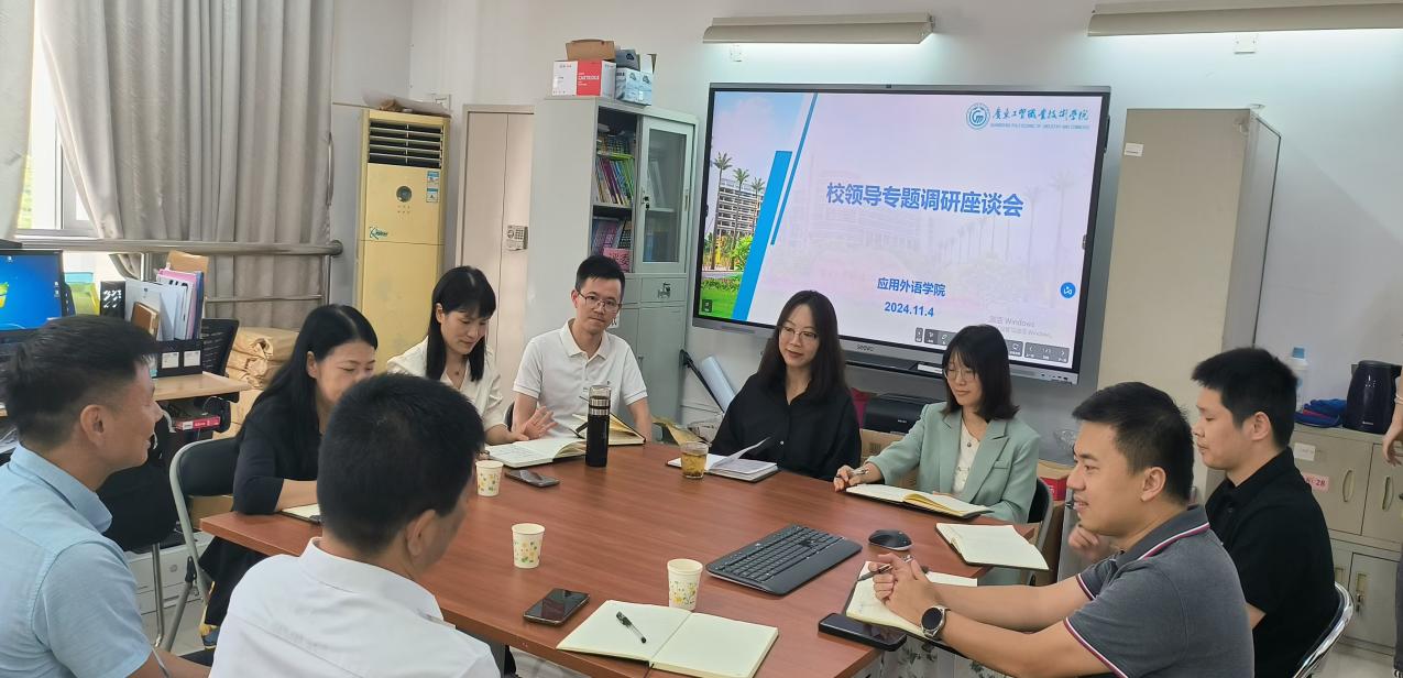 为学习贯彻党的二十届三中全会精神,统筹推进教育科技人才体制机制一体改革,将党的二十届三中全会精神落实到教育教学改革和人才培养过程中,培养担当民族复兴大任的时代新人。11月4日下午,学校党委委员、副校长唐毓秋到应用外语学院调研指导工作,并于明德楼1区207室开展座谈交流,应用外语学院党总支书记罗春科、院长彭枚芳、副院长胡红玲、学工办主任林耀佳、辅导员和专任教师代表参加本次座谈调研,会议由罗春科主持。