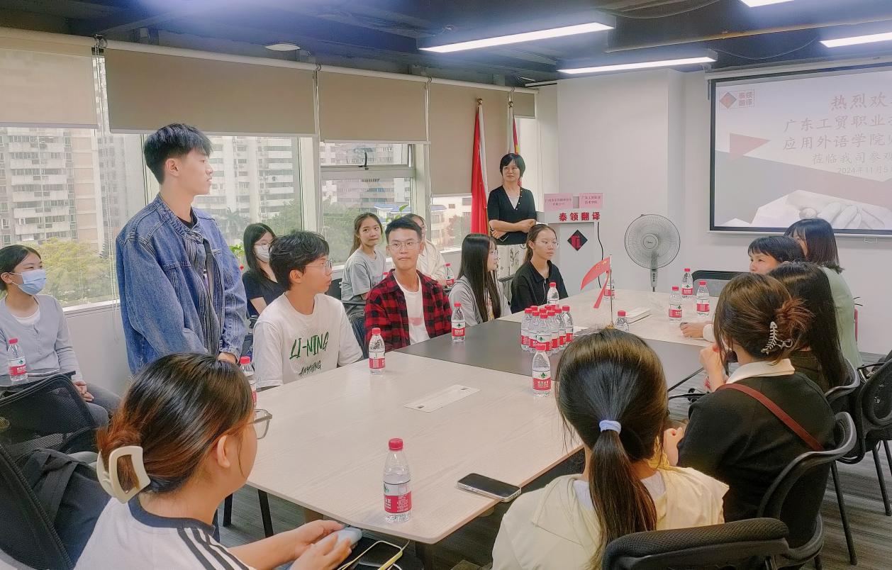 为深入推进“访企拓岗促就业”专项行动,对接企业人才需求,提升人才培养质量,促进学院毕业生高质量就业。11月5日,应用外语学院副院长胡红玲、辅导员陈晓玲及学生代表共20余人赴广州市泰领翻译服务有限公司走访交流。泰领翻译服务有限公司是学校教师挂职锻炼及学生实习基地,近年来公司与学院深度开展产教融合和校企合作。