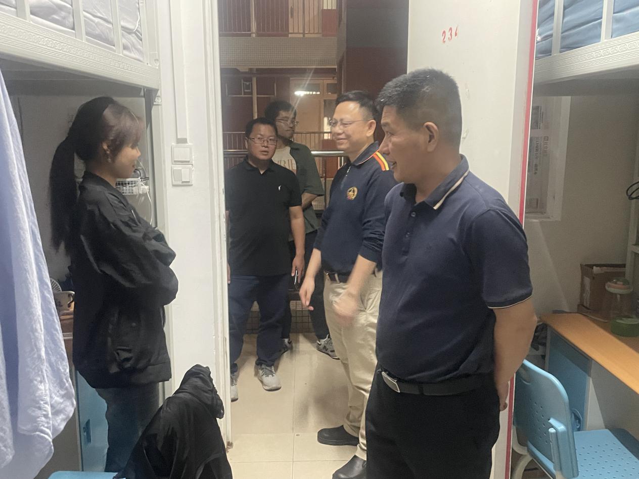 为帮助新生更好适应校园生活,增强新生的归属感并及时解决生活设施问题,进而引导新生走出宿舍,走向操场,以良好的精神面貌迎接美好校园生活。2024年11月11日晚,学校党委委员、副校长唐毓秋,对外合作交流部部长伍炜勤等领导们一同走访16栋外语学院新生宿舍,深入了解新生住宿及生活情况,倾听意见与建议。