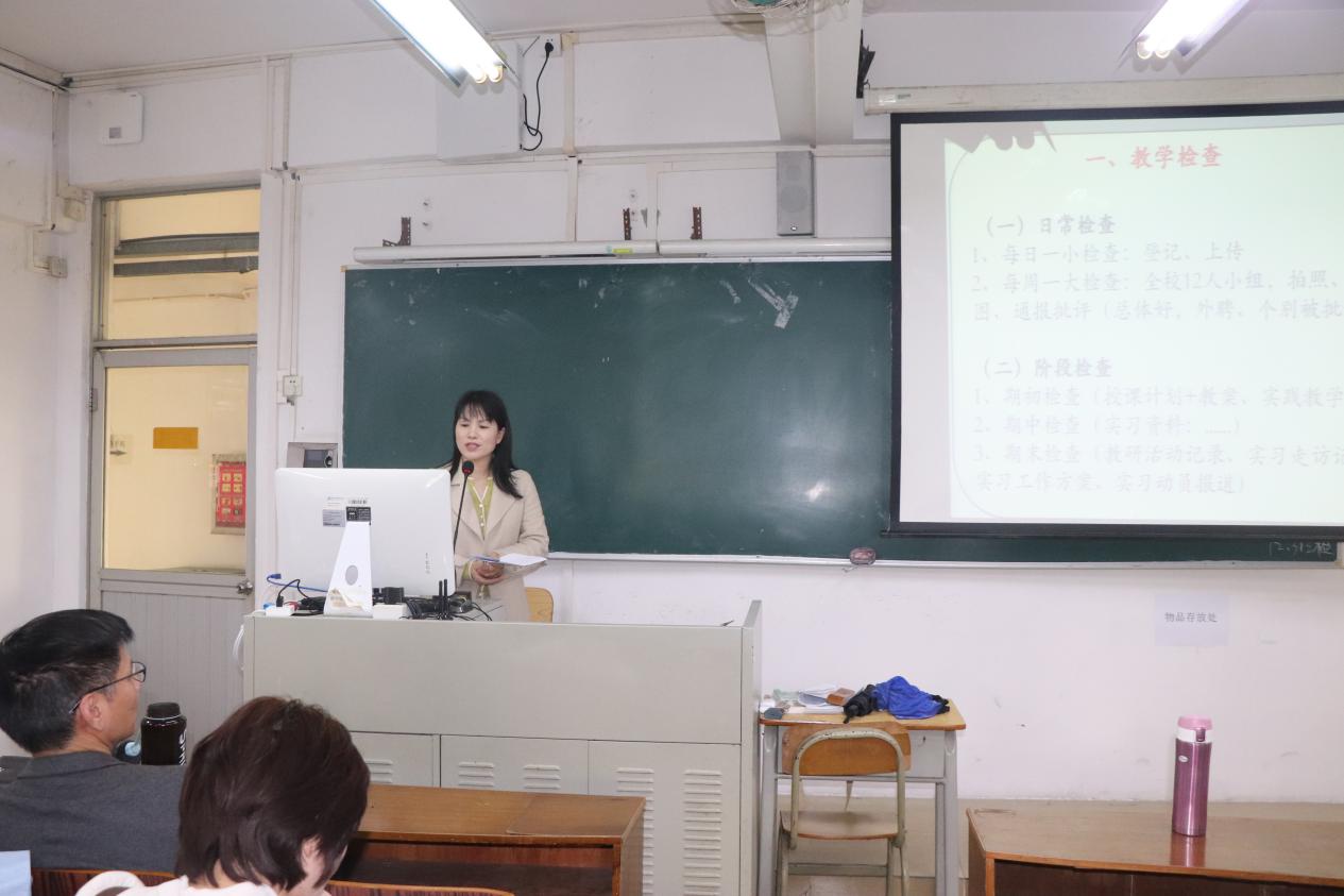胡红玲副院长对教学工作进行了总结。她提到了本学期的教学检查、实习实训、英语角活动、工作量统计以及试卷审核等工作情况。同时,她对下学年的工作计划进行了详细规划,包括围绕职责分工开展工作,进一步拔高大学英语四、六级通过率,将其从当前以大英教研室为主体,逐步内嵌至全院的每一门专业课程;加强实习实训和横向服务;推动科研工作,鼓励发表高水平论文;大力推进商务英语专业建设,开展校企共建课程、产业学院等项目。