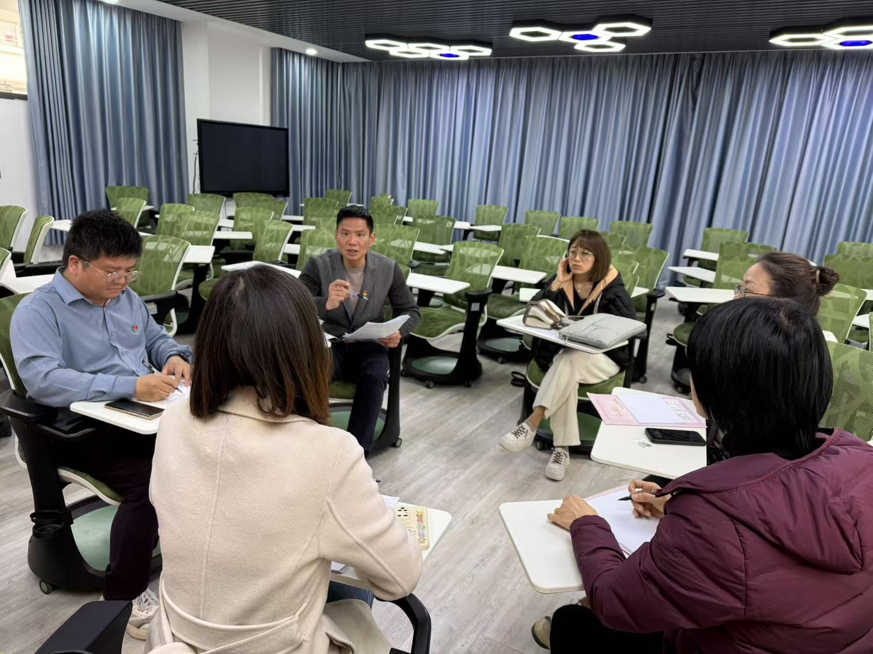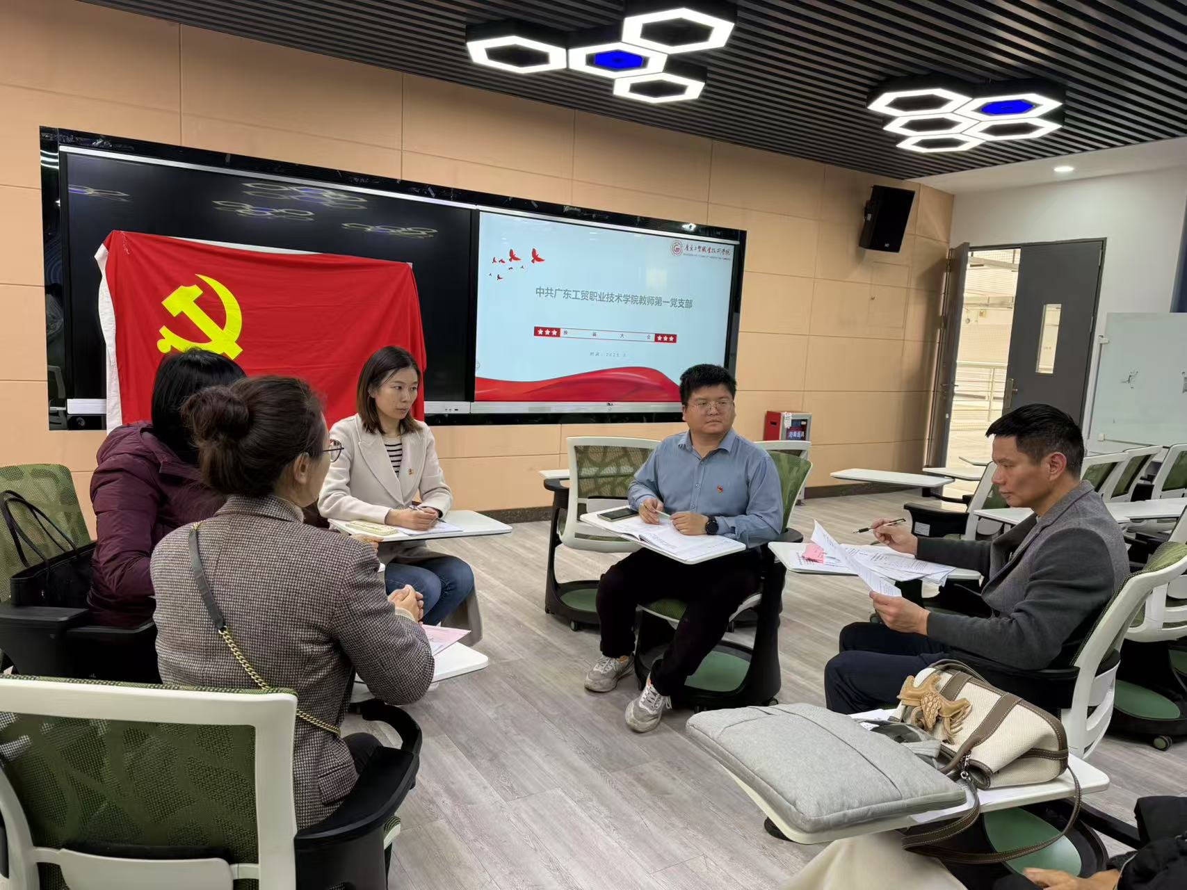 在组织生活会环节,陈锦英代表上一届支部委员会向党员大会述职。全面回顾了 2024 年度党支部在思想建设、组织建设和作风建设等方面的工作情况,深入剖析了党支部工作中存在的问题与不足,如理论学习深度有待加强、党建活动形式不够丰富等,并针对这些问题提出了详细的整改措施与努力方向,为后续工作开展明确了路径。随后,党员们开展批评与自我批评。大家结合自身工作实际,围绕教学科研、师德师风、课程思政等方面,深刻查摆问题,剖析根源,做到实事求是、直面问题,既指出自身不足,也诚恳地向其他同志提出意见建议,在交流中实现思想碰撞,达到红脸出汗、增进团结、促进工作的目的。