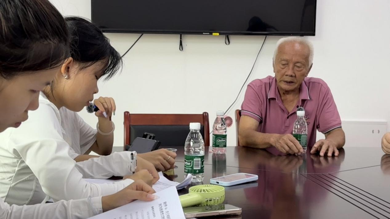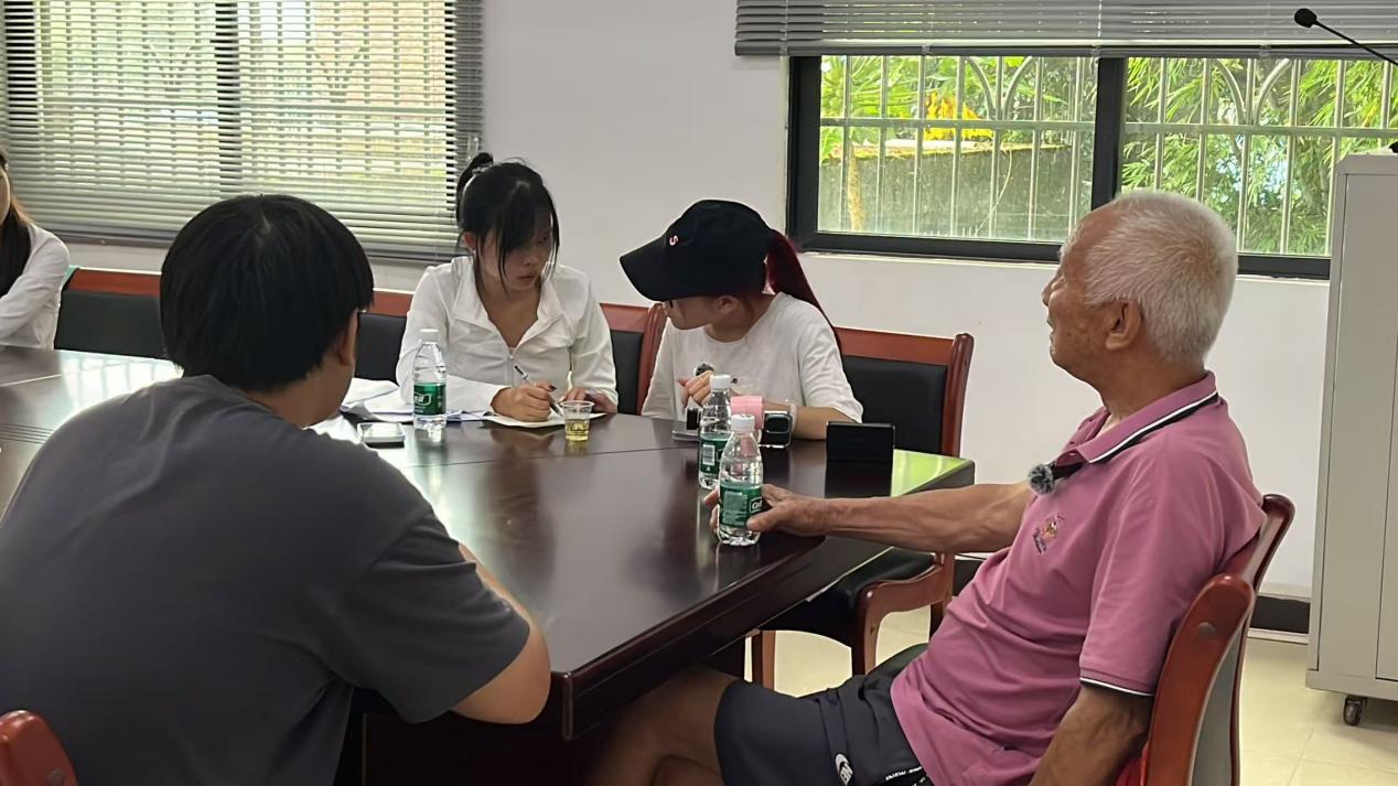 当日清晨,突击队队员抵达寮田村新屋吓村委会会议室。经村主任牵线,队员们见到了革命先辈王达宏的侄子王史成老先生。老先生特意带来精心整理的珍贵史料,言语间满是对此次访谈的支持,友好热烈的氛围为红色探寻打下了坚实基础。