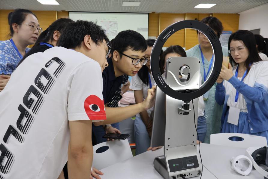 在应用外语学院智慧实训室,学员们迎来福建亿学教育科技集团有限公司广东区域大区总监谢平及其技术团队的专业指导。专家团队聚焦人工智能与信息技术在外语教学中的综合应用,详细讲解了跨境直播口语技能实训平台,并进行了跨境数字营销培训。学员们深切感受到了智能AI辅助教学、数字人与真人融合直播等前沿科技的魅力,并与企业专家就产教融合、创新人才培养及智慧平台融入教学等课题深入交流。