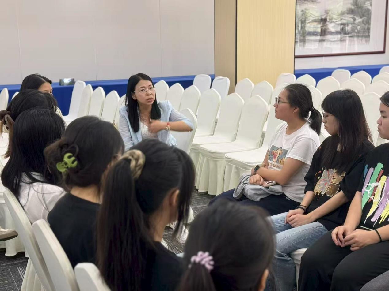 典礼结束,彭与苏特意组织12名学生进行座谈,亲切询问他们的实习准备情况,“有没有梳理好自己的英语专业技能?对轮岗岗位有什么期待?”一句句关切的提问让学子们倍感温暖。学生们纷纷表示,会牢记院长嘱托,在实习中认真学习、积极实践。最后,彭枚芳12名实习学子提出三点期望:一是做“主动学习者”,珍惜与企业导师共事的机会,把外语优势转化为岗位竞争力;二是做“创新实践者”,关注低空经济、保税医药等空港新赛道,探索“多语种+跨境服务”的创新路径;三是做“全面发展者”,在团队协作中提升沟通能力,完成从“学生”到“职业人”的蜕变。