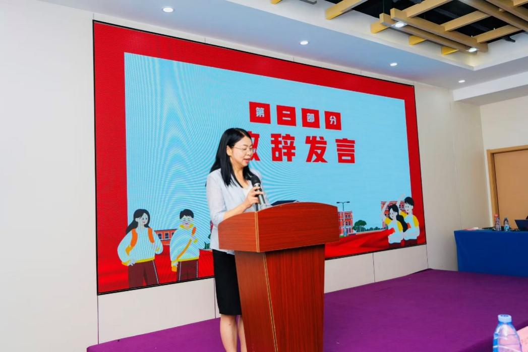 在“合作院校领导发言”环节,彭枚芳作为学校代表上台致辞,话语中满含对学子的期许与对校企合作产教融合的深度思考。她首先向广州空港跨境电商园及入驻企业致以衷心感谢,强调这是同学们将知识转化为实践的最佳舞台。致辞中,彭枚芳详细介绍了广州空港经济区的产业优势,特别针对商务英语专业学生的岗位技能提升展开阐述,让学子们清晰看到自身优势与产业需求的契合点。