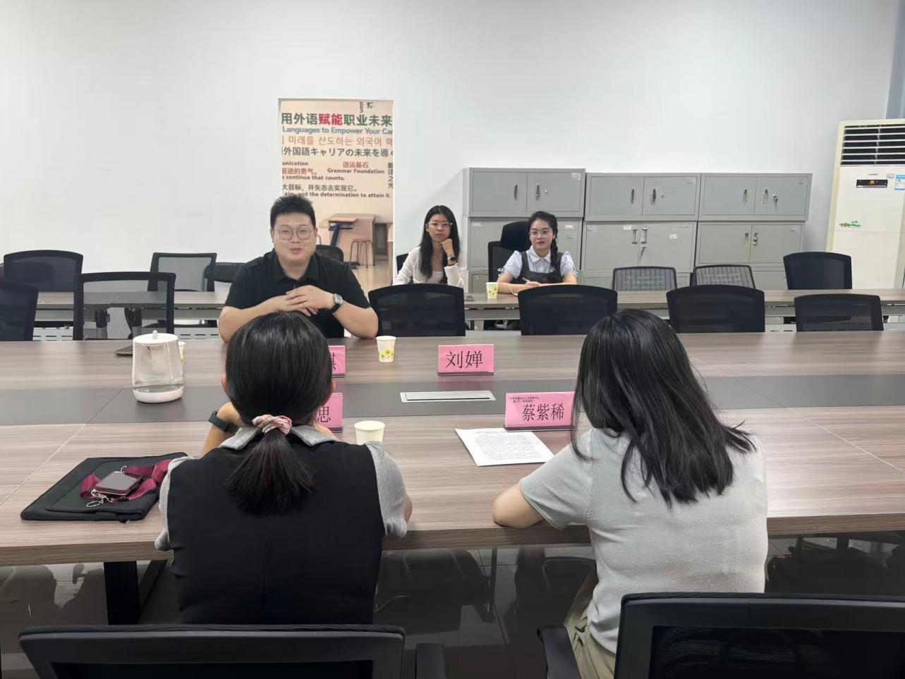 2025年9月16日,广州市青藤社会工作服务中心杨曼思副主任、蔡紫稀副主任与新葡的京集团8814(中国)股份公司应用外语学院头雁服务队负责人冯锐骐老师及两位队长,于行知楼606会议室举行会议。