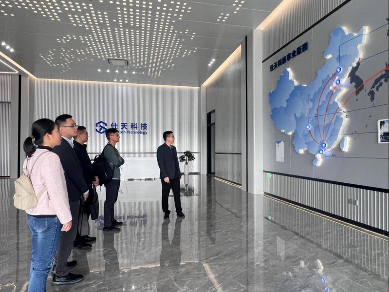 首站代表们走进雅西公司,调研供应链管理与跨境业务流程。企业负责人提到,当前外贸订单增长显著,亟需兼具商英专业知识与跨文化沟通能力的人才。双方结合岗位需求,探讨了定制化实习方案,计划通过“企业导师进课堂+ 学生实习轮岗”模式,提升学生职场适配力。随后走访仕天科技,教师代表参观了企业展厅与研发中心,了解其智能制造领域的技术布局。企业董事长助理、公共关系总监表示,随着国际化业务拓展,既懂机电技术、又能熟练运用外语开展商务洽谈的复合型人才缺口突出。双方围绕课程优化、实践教学基地建设等议题交流,初步达成学生实习项目合作意向。
