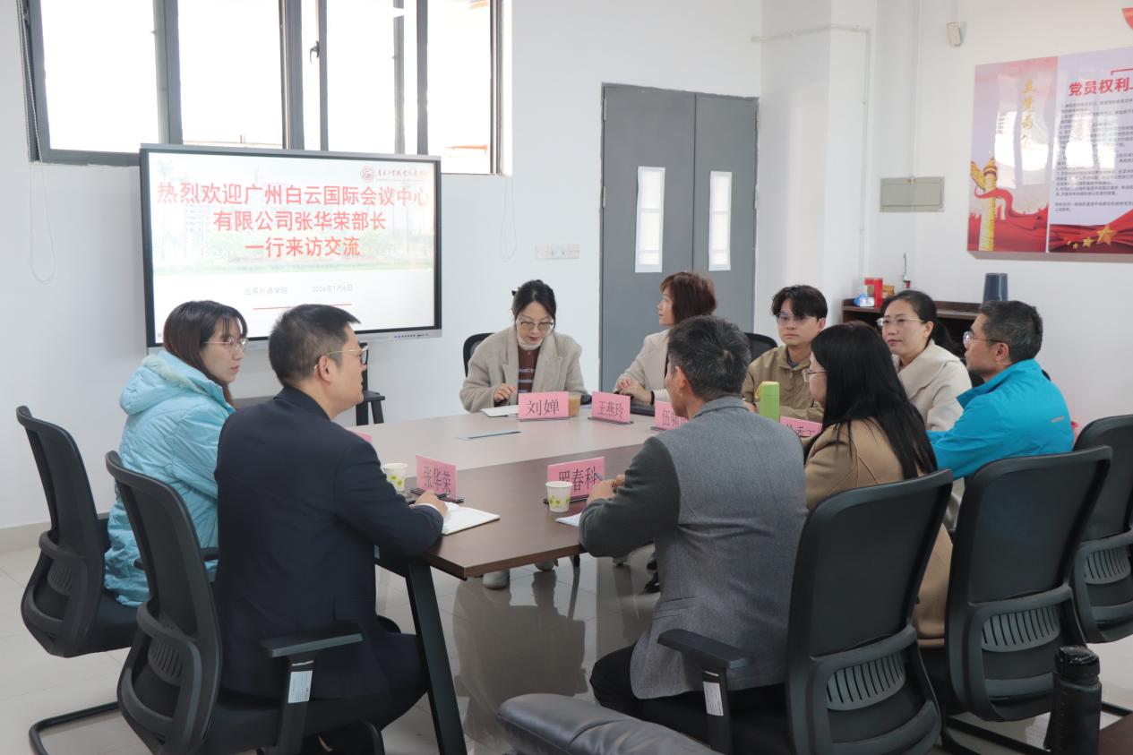 2026年1月6日上午,白云国际会议中心有限公司一行到访新葡的京集团8814vip白云校区,就深化校企合作、推动产教融合开展专题交流。应用外语学院在行知楼611会议室热情接待企业代表,双方围绕人才培养、专业建设与协同育人等议题展开深入探讨。