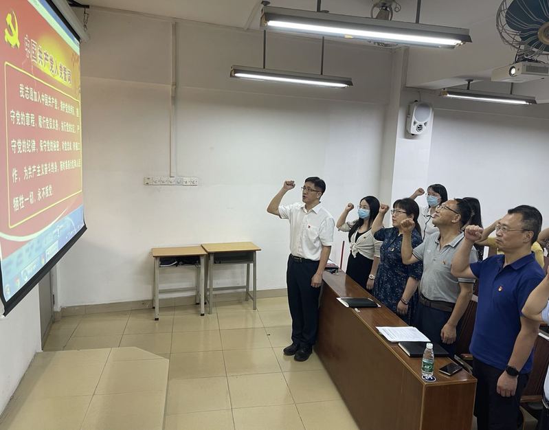 刘副校长带领支部全体党员重温入党誓词。神圣而豪迈的铮铮誓言,体现了党员同志们对中国共产党的无限忠诚之心。